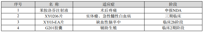 截至报告期末,公司已有4个创新药品种进入临床阶段,多个创新药处于临床前研究阶段,其中苯胺洛芬注射液已完成临床试验,NDA已获受理,目前正在进行上市前的筹备工作。此外,用于急性髓性白血病的XY0206片已推进至三期临床阶段,用于缺血性脑卒中的XY03-EA片也已进入临床Ⅱb阶段。2025年7月,公司自主研发的化药1类新药“G201-Na胶囊”获批IND批件,主要用于辅助生殖领域。